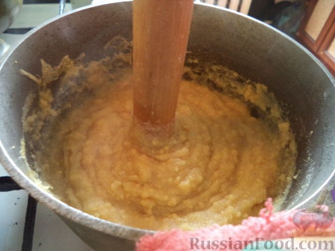 - По готовности мамалыгу нужно снять с огня и дать ей остыть в той таре, в которой она была приготовлена.
