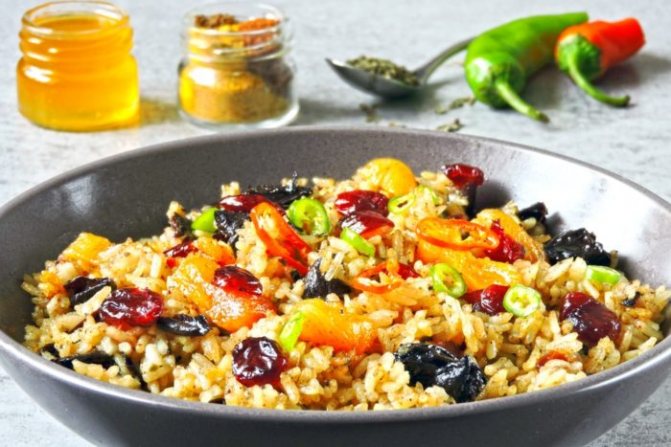 Для приготовления вегетарианского плова по данному рецепту потребуются рис, грибы и специи в следующих пропорциях: