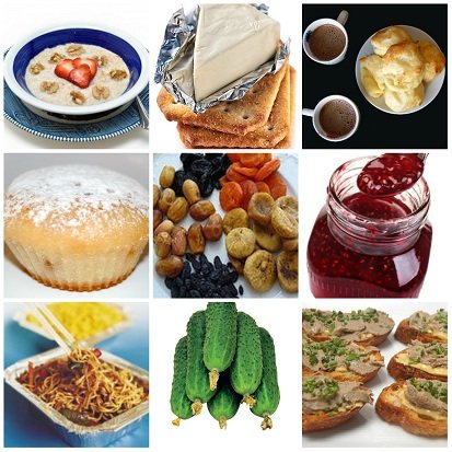фото-коллаж с непортящимися продуктами, годными для путешествий
