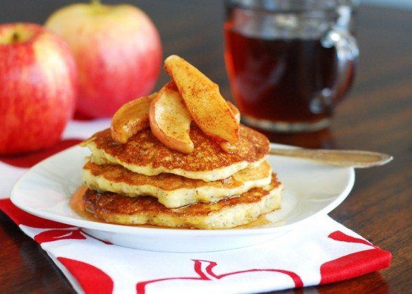 Если вы хотите, чтобы вкус яблок был более явным, не трите яблоки на терку, а нарежьте дольками. Выглядят такие блинчики очень аппетитно.