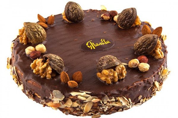 Ореховый торт по-королевски желательно употреблять охлаждённым с несладким зелёным чаем, фруктовым соком или молоком.