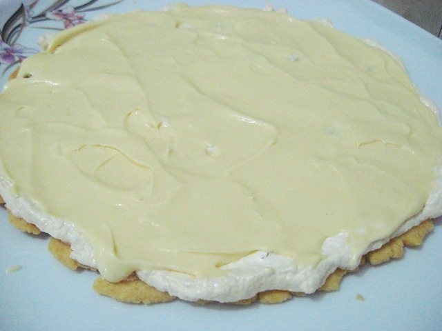 Раскатываем коржи, укладываем на подготовленный противень (смазанный сливочным маслом и присыпанный мукой или же устланный пергаментной бумагой для выпекания). Сверху на тесто укладываем нашу белковую массу ровным (по возможности) слоем (на один корж используем примерно по 2 ложки столовые белков).