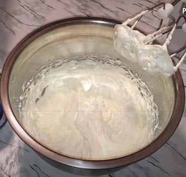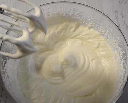 10. Для приготовления крема взбейте сливки с сахарной пудрой (сахаром) до плотных пиков.