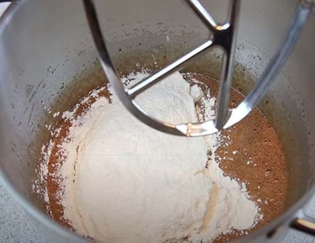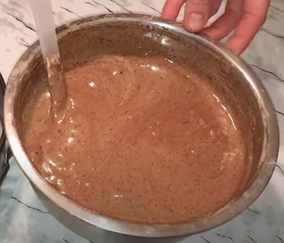 В один прием высыпаем сухую смесь и все хорошо перемешиваем. Долго взбивать не надо, чтобы масса не осела.