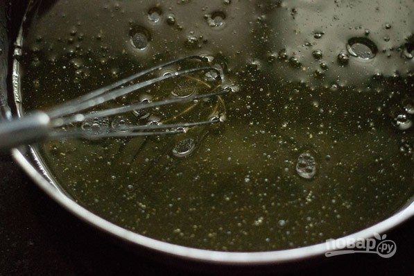 Разогреваем его до жидкого состояния и процеживаем через сито. Даем немного остыть.