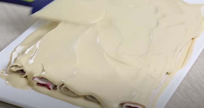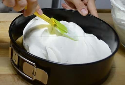 Выкладываем массу с кремом и хорошенько разравниваем ее.