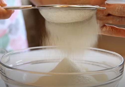 1. Соедините и просейте все сухие ингредиенты: муку, какао, разрыхлитель и соль.