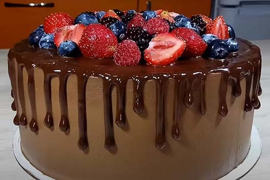 13. А дальше можно украсить торт по желанию шоколадом и ягодками. Оставьте торт, чтобы он пропитался, на 3-5 часов.