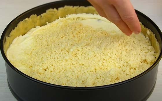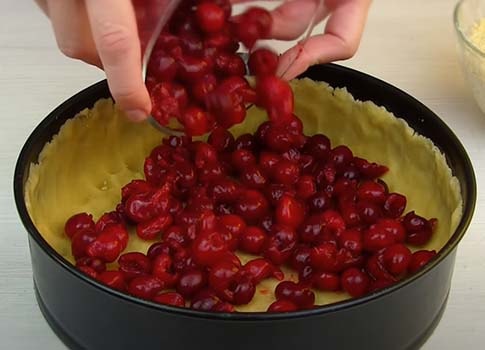 - Рассыпчатый торт с творогом, вишней и кокосовой стружкой