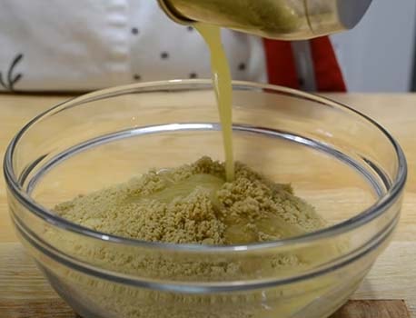 Хорошо перемешиваем, чтобы она вся равномерно пропиталась. Крошка должна быть полностью влажной и при сжимании в руке собираться в комок.