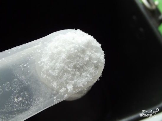 2. В хлебопечку всыпьте полторы чайные ложки сахара. Насыпьте соль.
