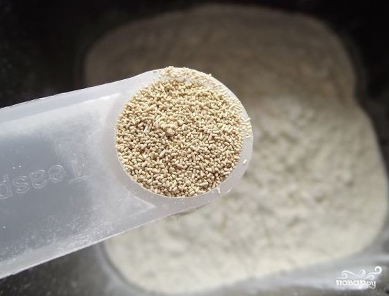 - В тесто добавьте 1 столовую ложку сухих дрожжей.