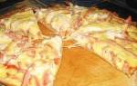 Готовое тесто раскатывают, укладывают ингредиенты и помещают в духовку. Готовую пиццу разрезают на порционные кусочки и… наслаждаются чудесным вкусом!